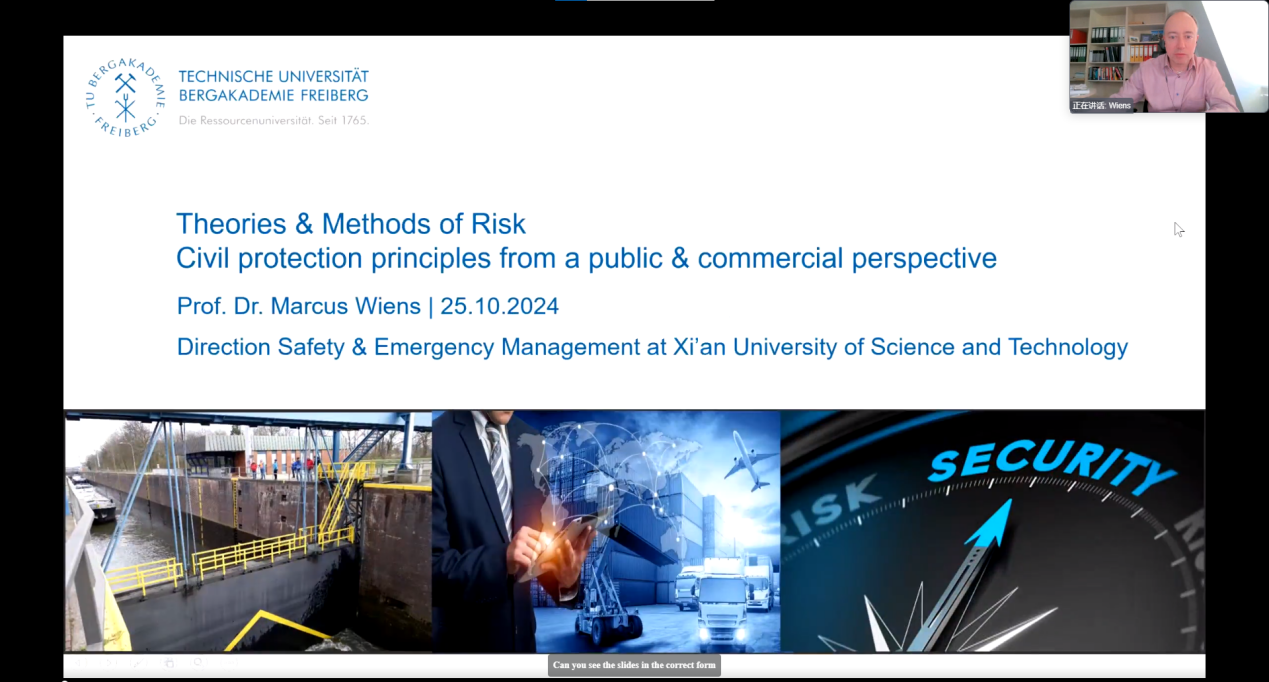 时间:2024-10-27 阅读量:187110月26日晚,由西部安全工程虚拟教研室承办、安全黑人av和安全协会组织的安全天地大讲堂第三十三讲成功举办。德国弗莱贝格工业大学Marcus Wiens教授受邀主讲。我校300余名本科生、硕士生在线聆听了讲座。Wiens教授以“欧洲的安全与风险管理:理论与技术前沿”为题,深入分析了欧...