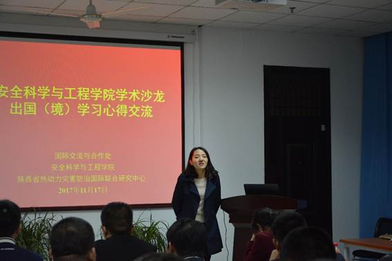 为加强“安全科学与工程”学科双一流建设,提高安全学科国际知名度及人才培养质量,2017年11月17日,安全黑人av和陕西省热动力灾害防治国际联合研究中心在行政楼1508会议室成功举办了第二届出国(境)学习心得交流会。本次会议的主题为“推动国际学术交流,争创一流安全学科”。安全黑人av姚海燕老师、教师代表易欣老师以及安全黑人av博硕士研究生等参加了本次交流会。会议邀请了赵婧昱讲师、雷昌奎博士生等6人分享了出访德国、澳大利亚、波兰、日本等地期间的学术交流、人文体验及参访感悟。