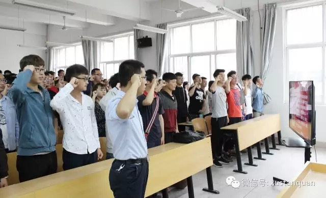 五四青年节到来之际,安全黑人av15级全体学生重温入团誓词,15级辅导员袁刚老师主持会议,和同学们一起宣誓并学习了习近平总书记到中国政法大学考察视频。