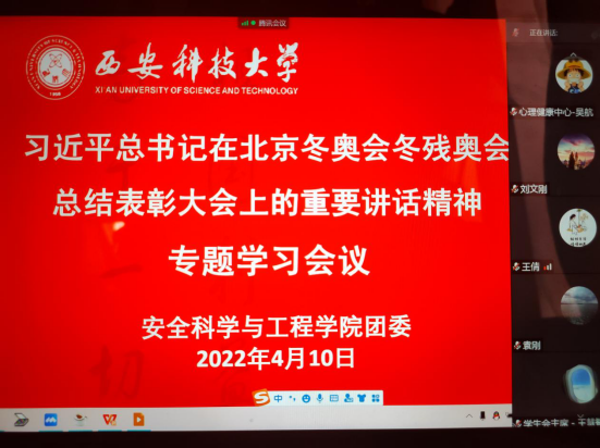 4月10日下午,安全黑人av组织团学主要干部通过线上会议形式学习习近平总书记在北京冬奥会冬残奥会总结表彰大会上重要讲话精神。黑人av党委书记刘文刚、党委副书记田园出席会议,黑人av团委委员、各年级辅导员,团学主要学生干部参加会议。会议由黑人av团委书记郭胜忠主持。