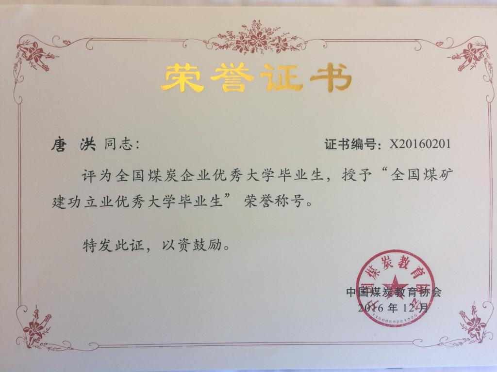 “要扎根煤矿、施展抱负,尽情放飞青春梦想。”唐洪于2016年被评为“全国煤矿建功立业优秀大学毕业生”。面对殊荣,唐洪感言,要做一个有担当、有抱负的“90后”矿工。
