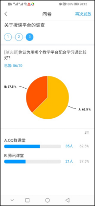 开始线上授课前还在学习通上发放调查问卷,与学生沟通后调整在线授课方式为腾讯课堂+学习通相结合的混合式翻转课堂。学习通上发布资料、视频和作业,腾讯课堂进行互动讲解、扩展知识,并具有回放功能方便学生复习,避免学生因网络问题无法参加直播课程的情况,学生课后反响很好。