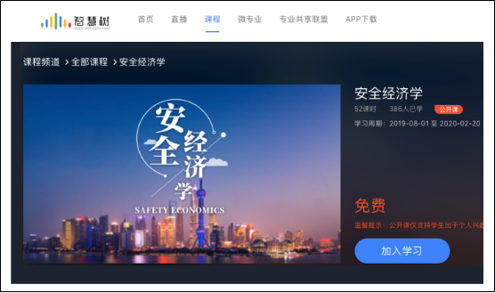 图6 安全经济学慕课在智慧树平台面向公众免费开放