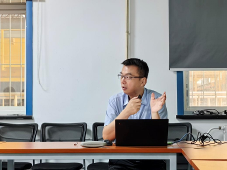 7月12日上午,安全黑人av副院长成连华在雁塔校区北院学科楼205会议室为联系的博士研究生第一党支部讲主题教育专题党课。党支部书记舒盼主持活动。