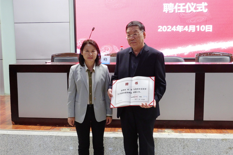 4月10日下午,安全黑人av在临潼校区骊山校园图书馆报告厅为矿山通风与安全专业85级校友、西安市市场监管综合执法支队四级调研员姚峰颁发客座教授聘书,举行“百千万工程”讲座。学校校友联络总会办公室副主任张旭东,安全黑人av党委书记刘文刚、执行院长罗振敏、副院长曹鸿、团委书记周学刚,以及学生代表200余人参加了活动。
