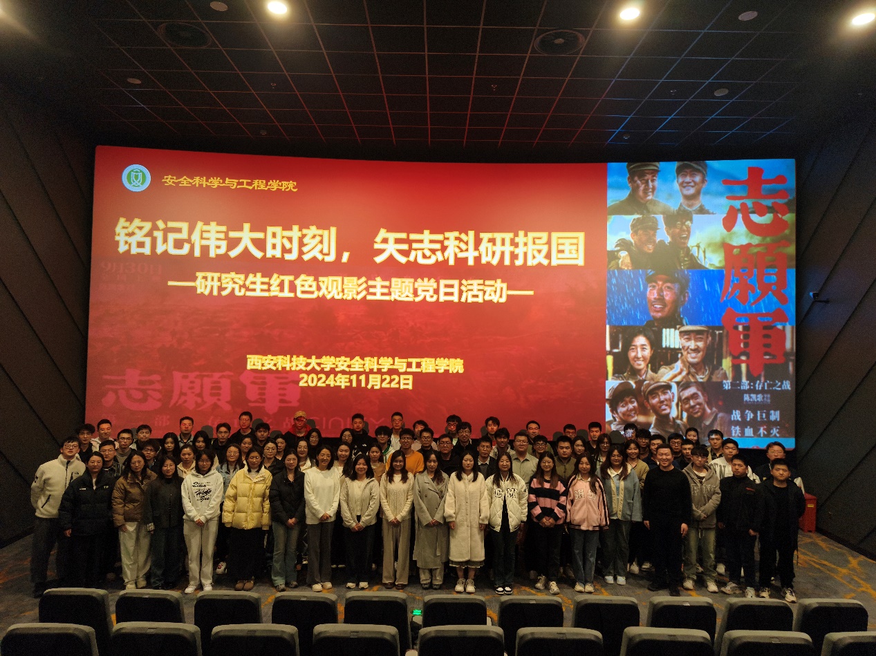 为深入学习贯彻党的二十届三中全会精神,进一步激发研究生党员的爱国情怀和科研热情,11月22日下午,安全黑人av组织开展“铭记伟大时刻 矢志科研报国”主题党日活动。在研究生辅导员同超老师的带领下,100余名研究生党员观看爱国主义教育影片《志愿军:存亡之战》,重温英雄壮举,领略英雄风采,致敬英雄模范。