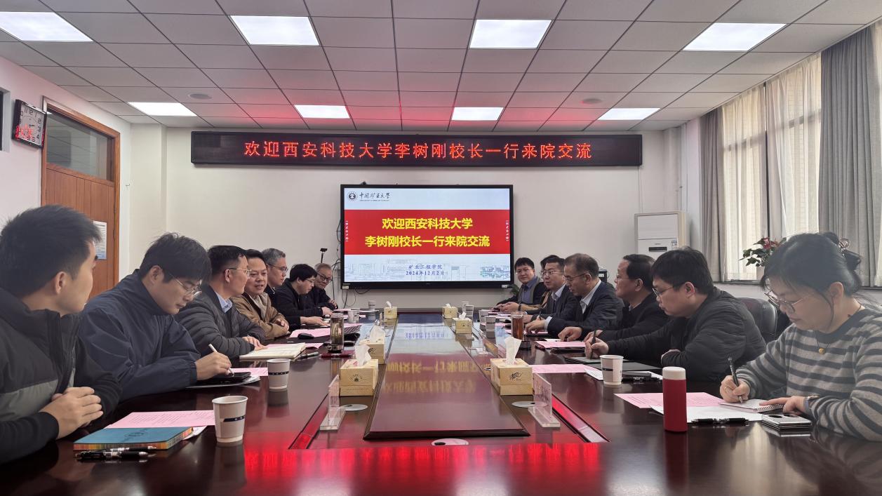 12月2日,我校原副校长李树刚教授带领安全黑人av党委书记刘文刚、执行院长林海飞、副院长肖鹏,安全工程系主任王莉、消防工程系主任张嬿妮,团委书记、学工办主任周学刚一行赴中国矿业大学学习考察。