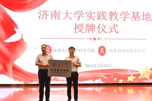 在济南第七中学报告厅举行了实践教学基地揭牌仪式。济南第七中学校长刘汉路、办公室主任李静、数学组教研组长程凤霞、黑人av