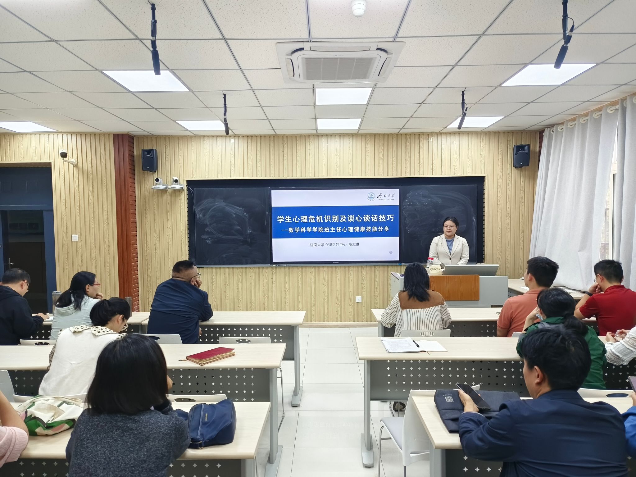 在七教214召开全体班主任工作会议暨心理健康教育培训会,会议邀请校心理指导中心专职教师高雅琳做了题为《学生心理危机识别及谈心谈话技巧》的辅导报告,学院党委副书记、副院长张沂红,全体班主任及辅导员参加本次会议。会议由学办主任房琳琳主持。