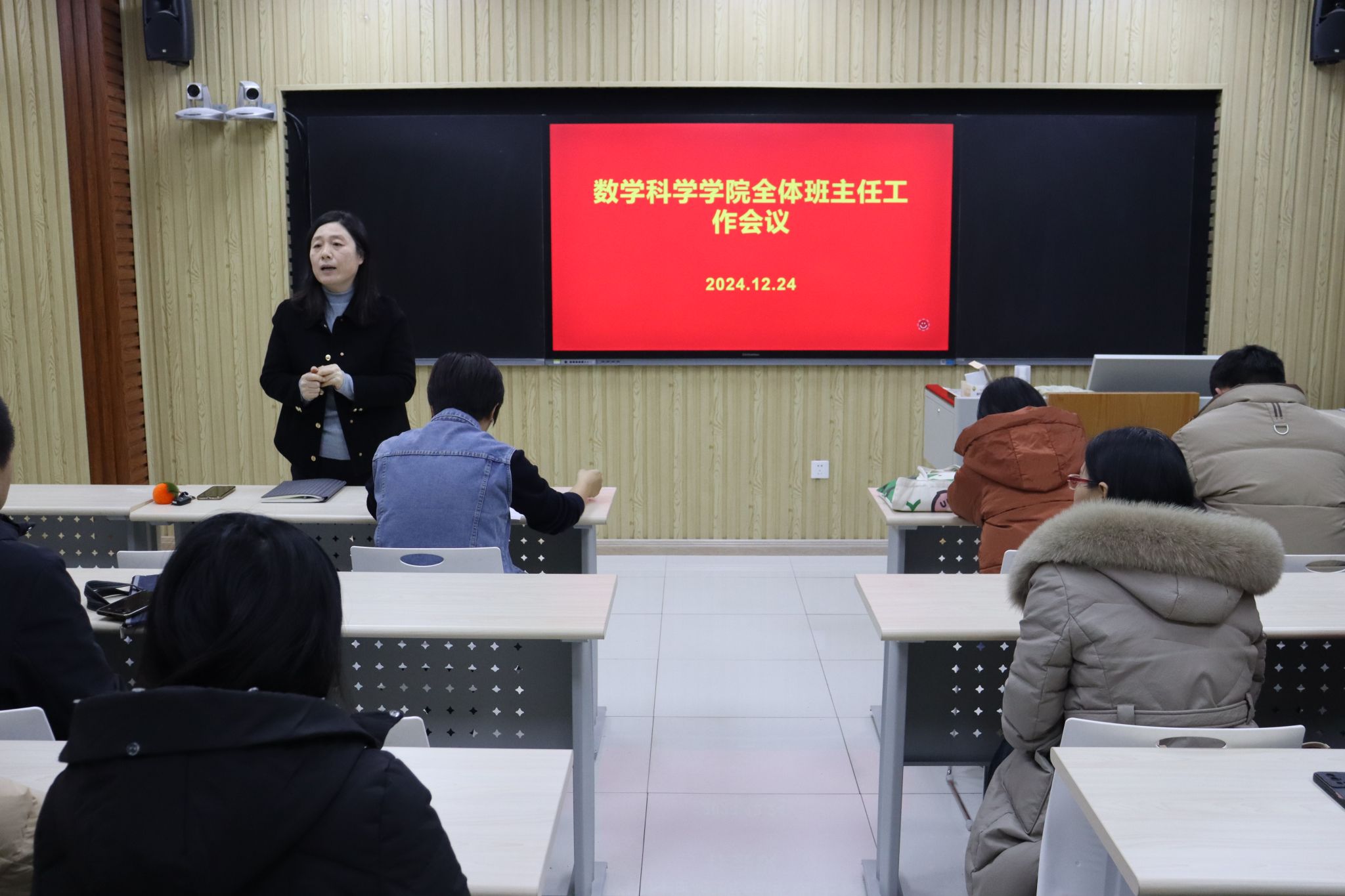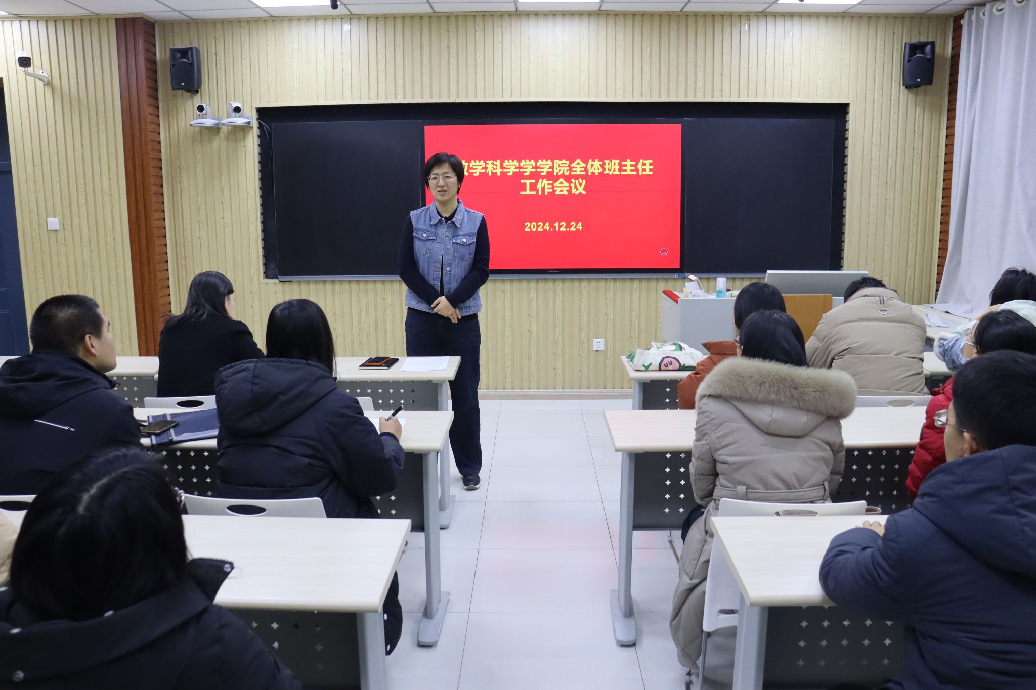 为进一步强化学生安全教育管理工作,营造安全、稳定、和谐的校园环境,充分发挥班主任在学生教育管理中的重要作用,12月24日下午,学院在智慧教室召开全体班主任工作会议。学院党委书记崔英静出席会议,学院全体班主任参加会议,会议由党委副书记、副院长张沂红主持。