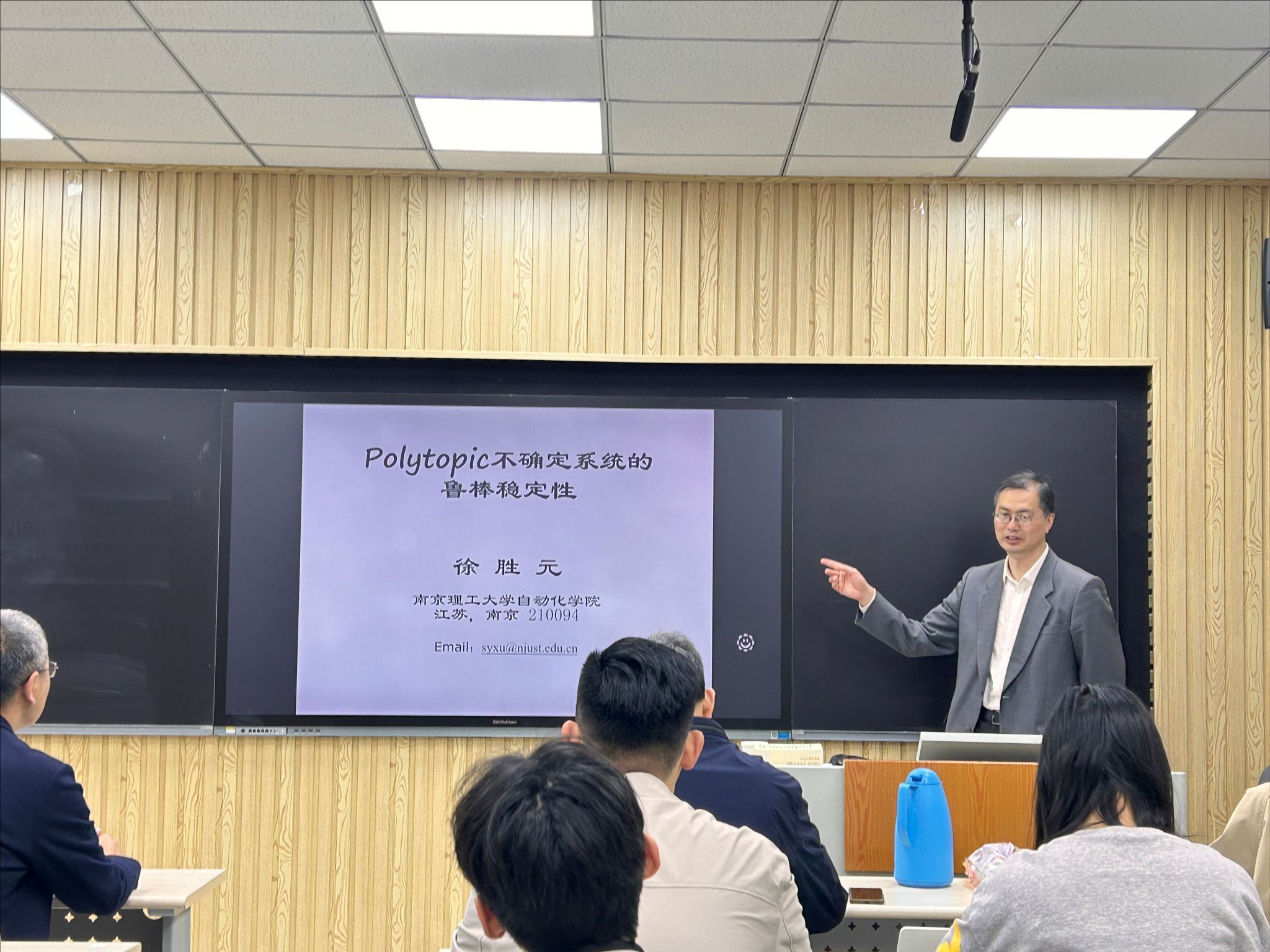4月16日,应学院邀请,南京理工大学自动化学院徐胜元教授作了题为“Polytopic不确定系统的鲁棒稳定性”的学术报告。本次报告会由院长孙元功主持,学院相关教师和研究生参加了本次报告会。