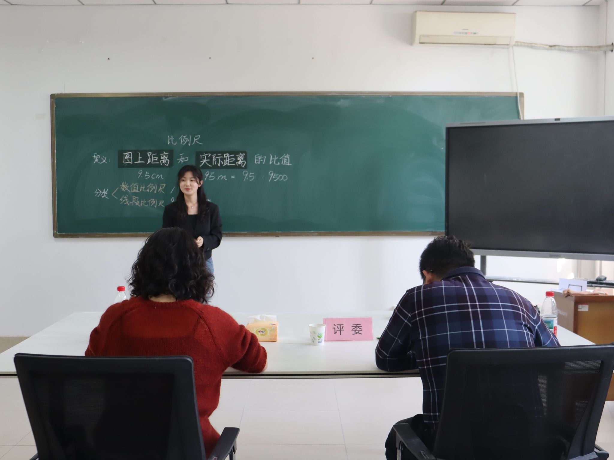 院赛于3月22日下午在第一教学楼顺利举办。比赛紧扣师范生职业发展核心需求,结合数学学科特点,设置小学、初中、高中3个学段,涵盖模拟授课、板书设计等关键环节,全方位考查选手的教学设计、课堂驾驭、语言表达、书写功底与临场应变能力。赛前,参赛选手潜心打磨教案,反复推敲授课细节,精炼板书布局,将对数学教学的热忱与专业积累融入每一处准备,展现出师范生勤勉务实的良好风貌。比赛现场氛围紧张而热烈,参赛选手们立足新课标理念,结合数学学科的逻辑严谨性与趣味性,将精巧的教学设计与新颖的教学方法融入课堂,把扎实的数学专业基础和良好的教学素养展现得淋漓尽致,为校级选拔奠定坚实基础。