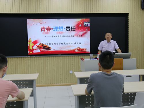 入党初心,不可动摇!会上,侯启海书记从青年党员如何做人、青年党员如何做事、青年党员如何做事业三方面出发,为毕业生党员上最后一次党课,做了离校前的最后一次叮咛与嘱托。侯书记说,答卷人初心如磐,九十九风华正茂,各位毕业生党员无论未来的职业选择如何,都应该始终牢记党员的身份,恪尽党员的职责,结合工作实际发挥党员模范作用,将自我的小我融入祖国的大我。有国才有家,侯书记大家勿忘初心,始终爱国、信党,坚定不移。志存高远,方能远航,侯启海书记希望毕业生党员们要敢想、敢拼、敢闯,勇立时代潮头,争做时代先锋,在担当中尽责,在尽责中成长。侯启海书记号召毕业生党员发挥先锋模范带头作用,站好毕业生党员最后一班岗,配合老师积极完成相关工作,文明离校,展现毕业生党员的时代风貌。最后,侯启海书记代表学院为毕业生党员送上了美好祝愿。