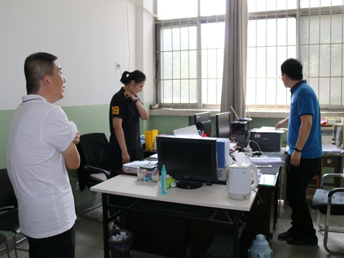 党委书记侯启海在学院办公室主任刘成立等人员的陪同下,对学院办公场所开展了安全大检查。侯书记深入到各办公室、实验室、机房等重点场所,逐一排查了各类安全隐患,并叮嘱在场人员一定要高度重视暑期安全工作,牢固树立“安全责任大于天”的意识,不要麻痹大意,要时刻绷紧安全这根线弦儿,每位教工在离开办公场所时要做到人走断电、关好门窗,做好疫情防控常态化下的各类安全工作。