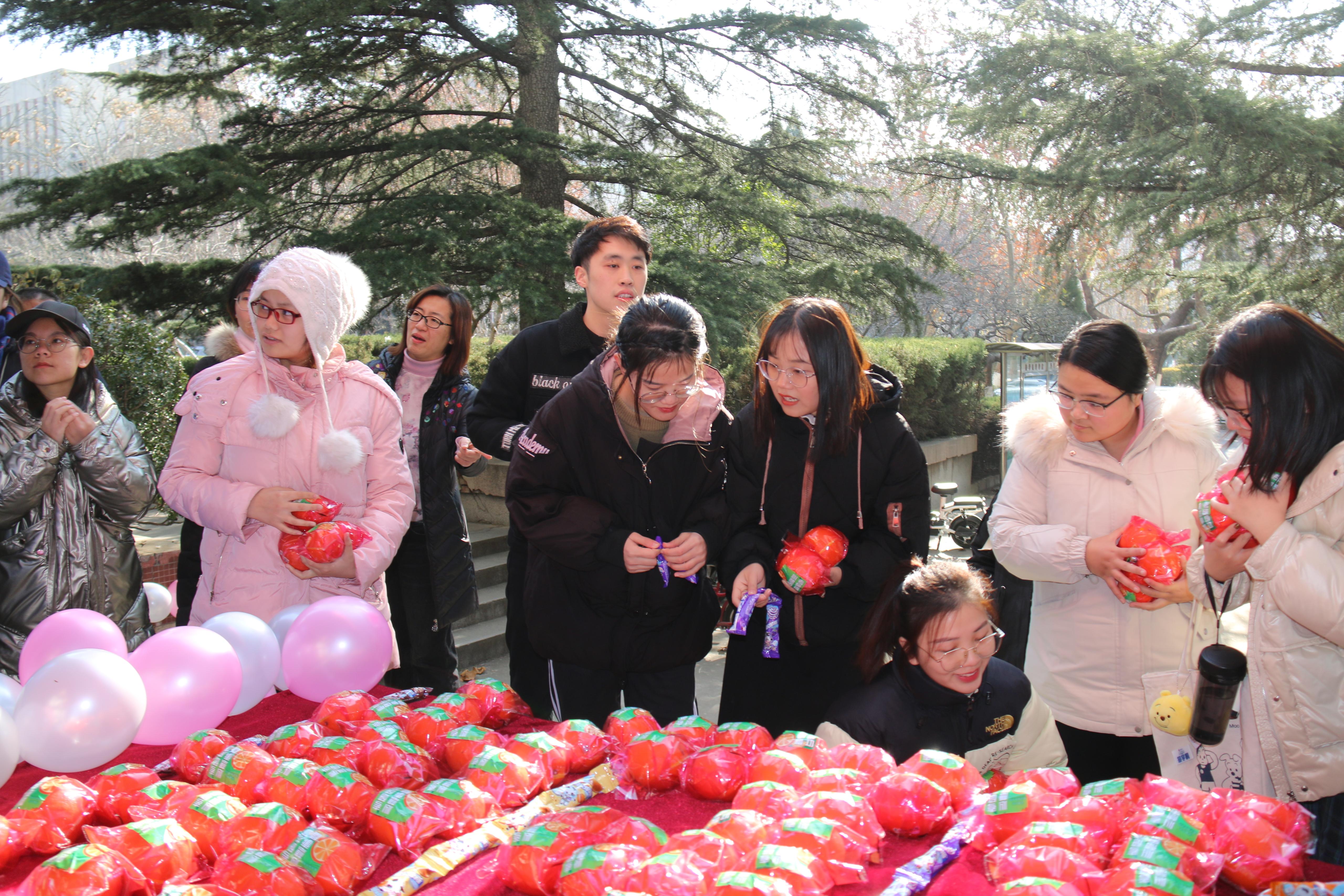 2021年全国硕士研究生入学考试在即,12月18日,学院为每一位考研学子准备了“暖心橙”和“棒棒糖”,寓意心想事成、考研成功,表达学院对考研学子们的深情关怀与美好祝福。学院党委书记侯启海、学院院长管延勇,学院党委副书记、副院长张沂红,学办辅导员参加活动。
