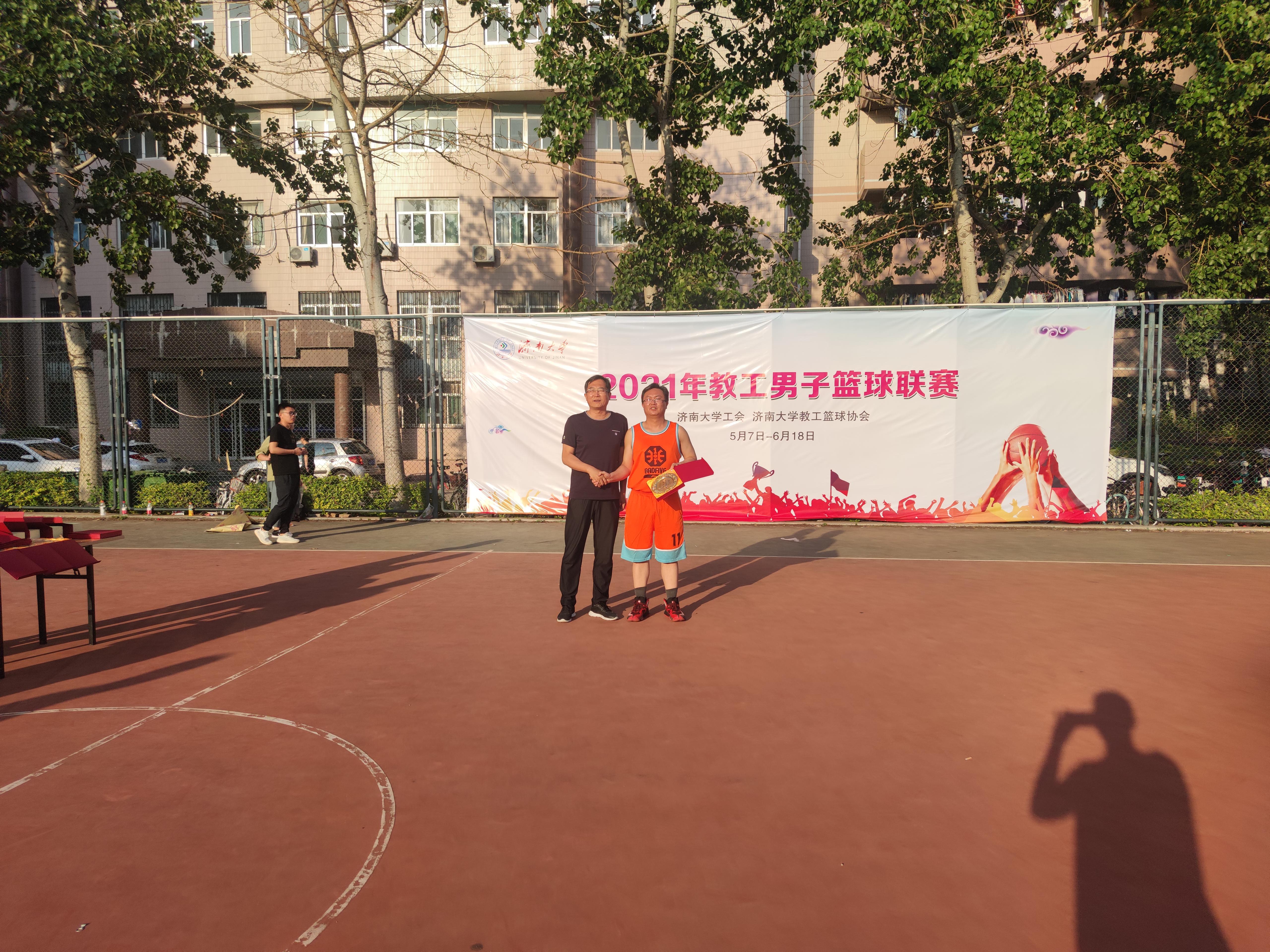 王光明、孙鹏举、孙启良、孙一冰、杨健、徐法升、吴立军等教职工代表学院参加比赛。学院办公室主任刘成立担任篮球队教练,全程指导训练、比赛。学院党委书记侯启海多次亲临赛场,为队员们加油助威。在学院领导的关心下,在全体队员的共同努力下,先后击败了科研平台、机关三、后勤处、商学院等代表队,荣获本次赛事的第七名。