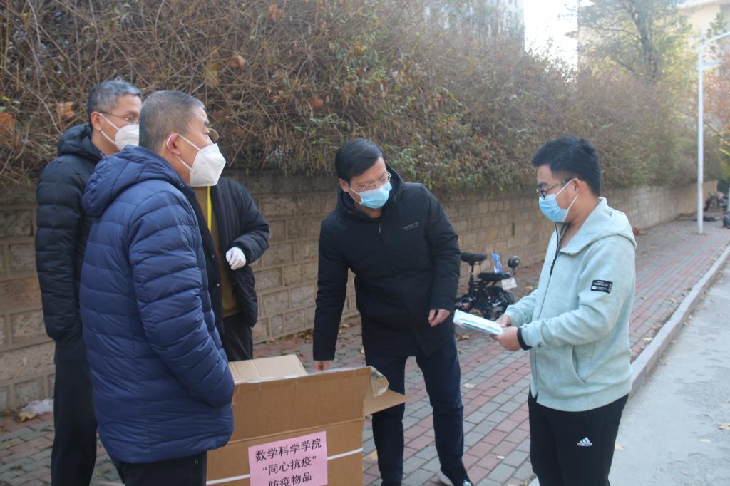 贴心关心关爱,共建温暖家园。为了配合学校做好疫情防控工作,切实保障全院师生的生命安全和身体健康,学院党委书记侯启海、学院院长孙元功带队,为全院在校学生发放了口罩、酒精等防疫物资,并时刻提醒同学们增强个人防护意识,保持良好卫生习惯;学院党委副书记张沂红带队为考研学生送去了牛奶等暖心食物,为所有坚持在考研路上的数院学子送去一份寒冬中的心灵关怀和真挚鼓励;学院辅导员、班主任为隔离学生以及特异体质学生送去了牛奶、水果、口罩等生活物资和防疫物品,全力保障他们的基本生活需求。