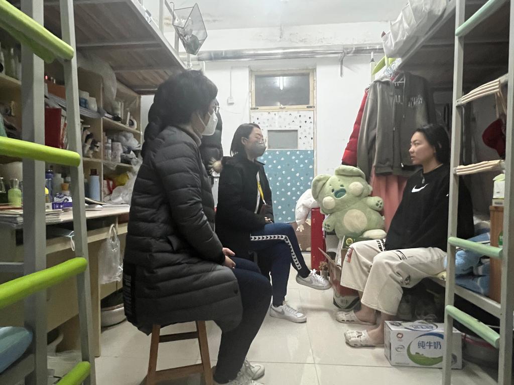 强化寝室管理,筑牢安全底线。为及时了解学生的思想动态以及及宿舍安全卫生状况,学院领导老师深入学生宿舍,与同学们贴心交谈,认真倾听同学们对学院工作的意见和建议,了解关心他们的生活用品和防疫物资准备情况、身体健康状况、线上学习效果等,再三叮嘱同学们要主动配合做好当前疫情防控各项工作,积极调整心态,认真完成在线听课等学习任务,确保线上教学“不断线”。