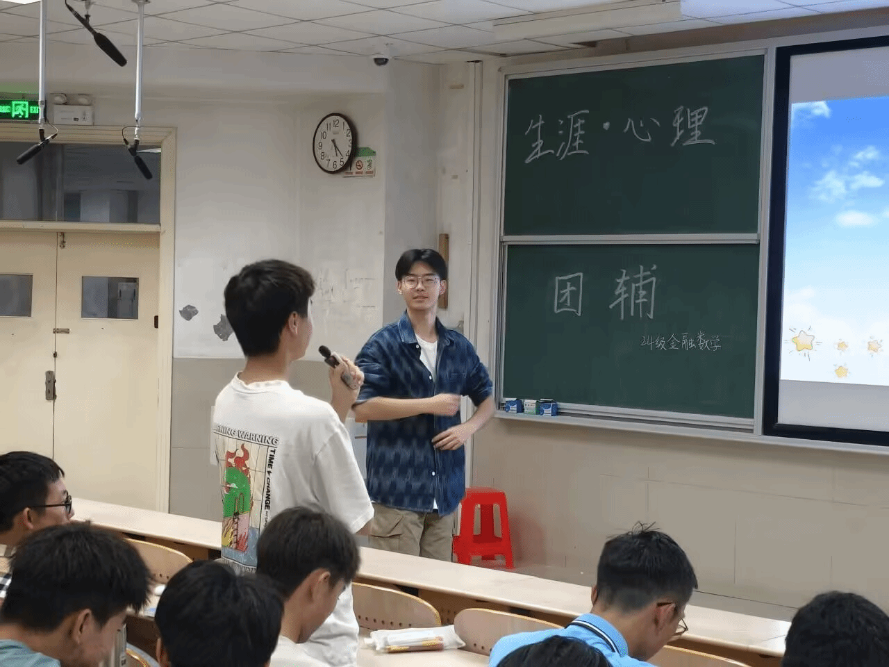心理团辅活动紧随其后,活动以心理测评作为导引,让同学们在填写问卷的过程中了解自己最近的心理状况,关注自己的内心世界,从心理上接纳自己的特点,并且明确自己在生涯规划中的优势和潜在挑战。之后,活动中播放了一系列感人至深的视频,展示了生命的奇迹和美好。这些视频触动了每一位学生的心灵,让大家深刻体会到生命的价值和意义。最后的“身临其境”环节,同学们通过角色扮演展开了激烈的讨论,学生会心灵援助部部长刘福龙通过这种轻松有趣的方式引导学生以积极的心态面对学习和生活中的挑战,营造一个健康、和谐的校园环境。