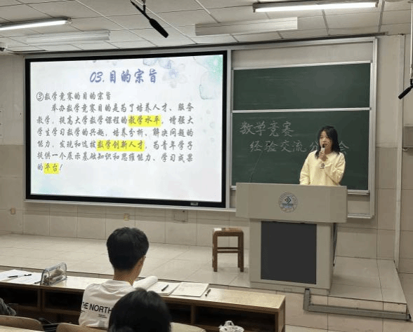 张倩同学和闫肃晶同学根据自己以往的参赛经历以及参加数学竞赛的心得体会,与同学们交流探讨数学竞赛的备赛方法和得分策略,并通过经验分享会的方式鼓励同学们踊跃报名,积极应对竞赛。数院的同学们可以汲取丰富的经验和知识,借鉴其方法和策略,以更好的学科素养与良好心态应对竞赛。