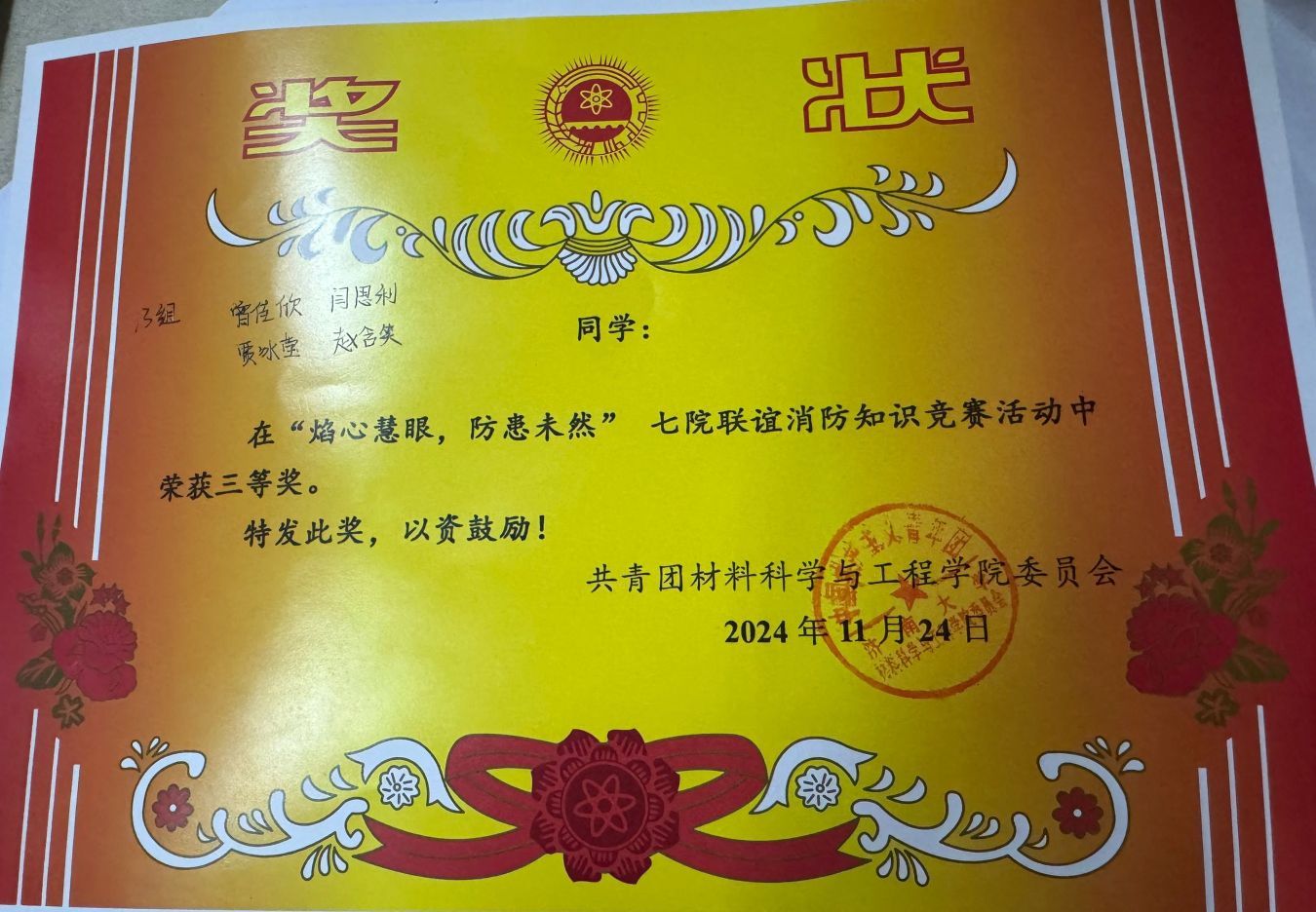 于11月24日在第二教学楼参加七院联谊消防知识竞答活动。本次活动通过普及消防安全知识,增强大家的安全意识,进而帮助师生打造一个安全、和谐、稳定的校园环境。