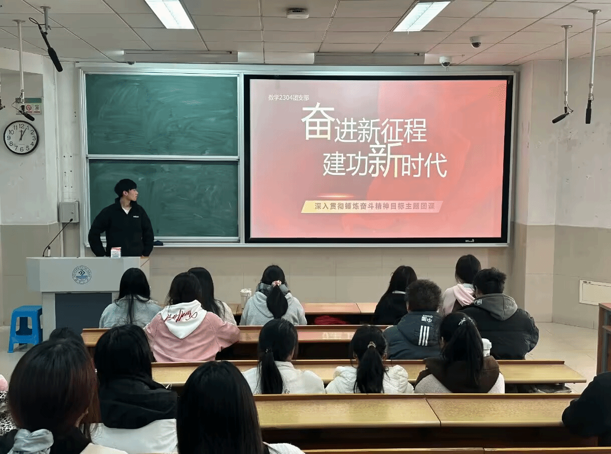 的数科2302班、硕士2301班和数学2304班分别在各自教室开展了以“锤炼奋斗精神”为主题的团日活动。