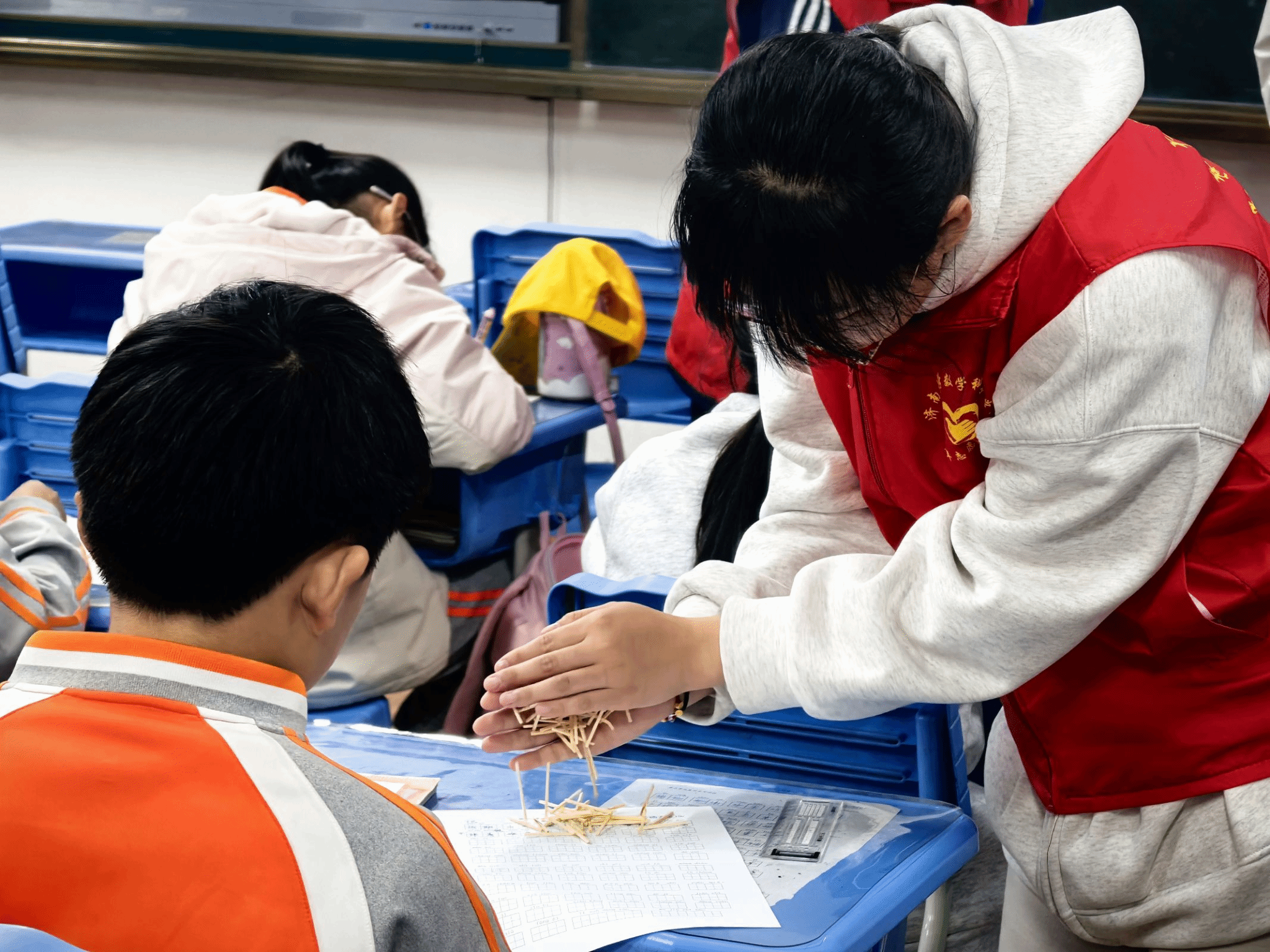 活动伊始,志愿者们巧妙引入“铺地锦”这一便捷算数方法,迅速吸引了孩子们的注意力,为后续深入讲解打下基础。随后,志愿者们通过讲述两位樵夫、骆驼分配等小故事,提出了一系列富有趣味性的数学问题,引导孩子们积极思考,锻炼他们的逻辑思维能力和换位思考能力。在活动中,志愿者们还向孩子们介绍了广泛应用于密码学和数据加密的雷劈数,其独特的性质让孩子们对数学产生了浓厚的兴趣,使他们感受到了数学的趣味性。同时,在火柴棒环节,孩子们通过移动火柴棒改变数字或运算符号,使等式成立,直观地观察到数字的变化,从而更深入地理解了数字的构成,这不仅让孩子们在轻松愉快的氛围中学习到了数学知识,还激发了他们对知识的热爱和探索欲望。