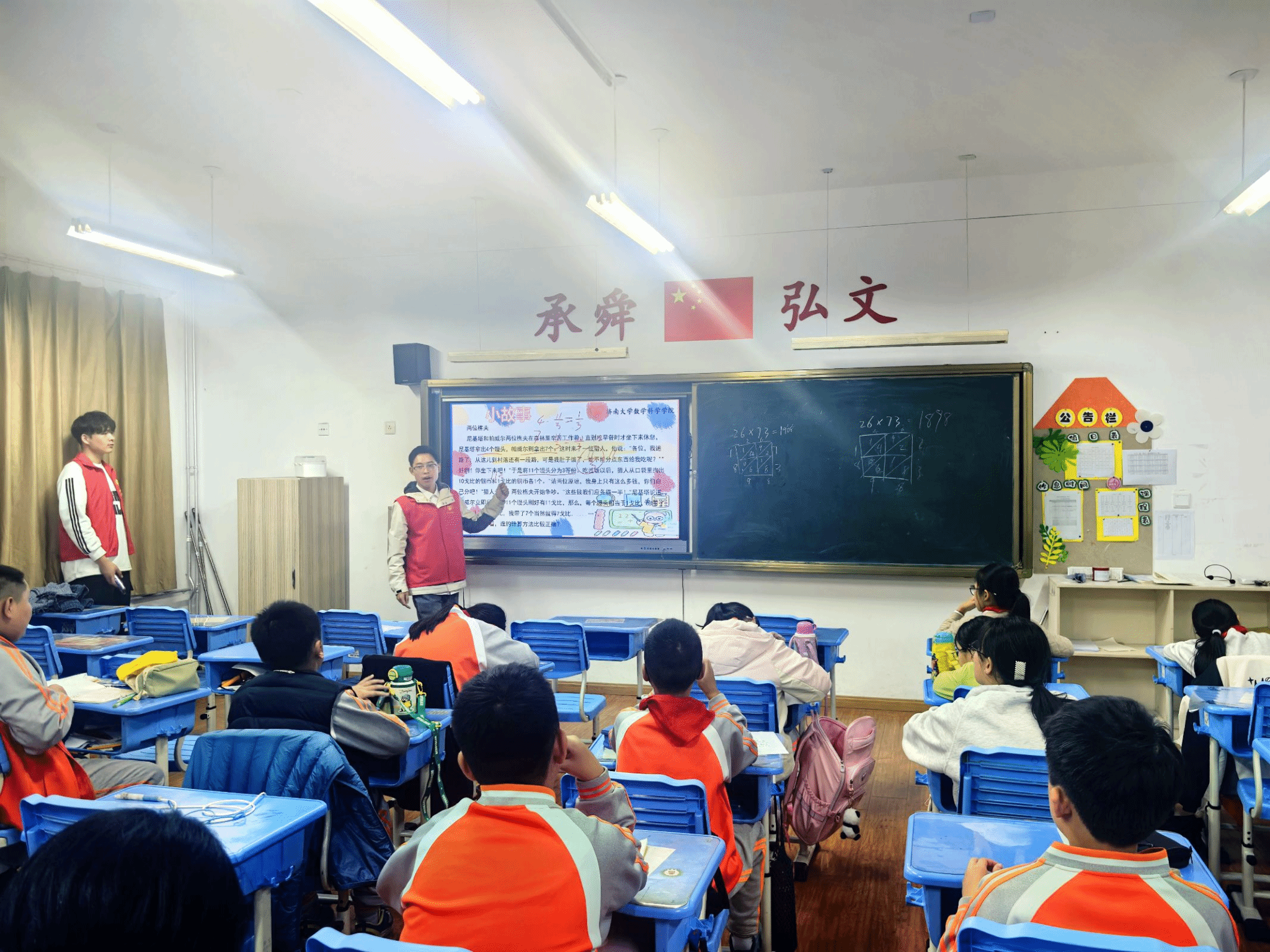 学生会青年志愿者协会于11月12日联合数学2402团支部来到济南舜文中学(小学部),开展趣味数学的授课活动。