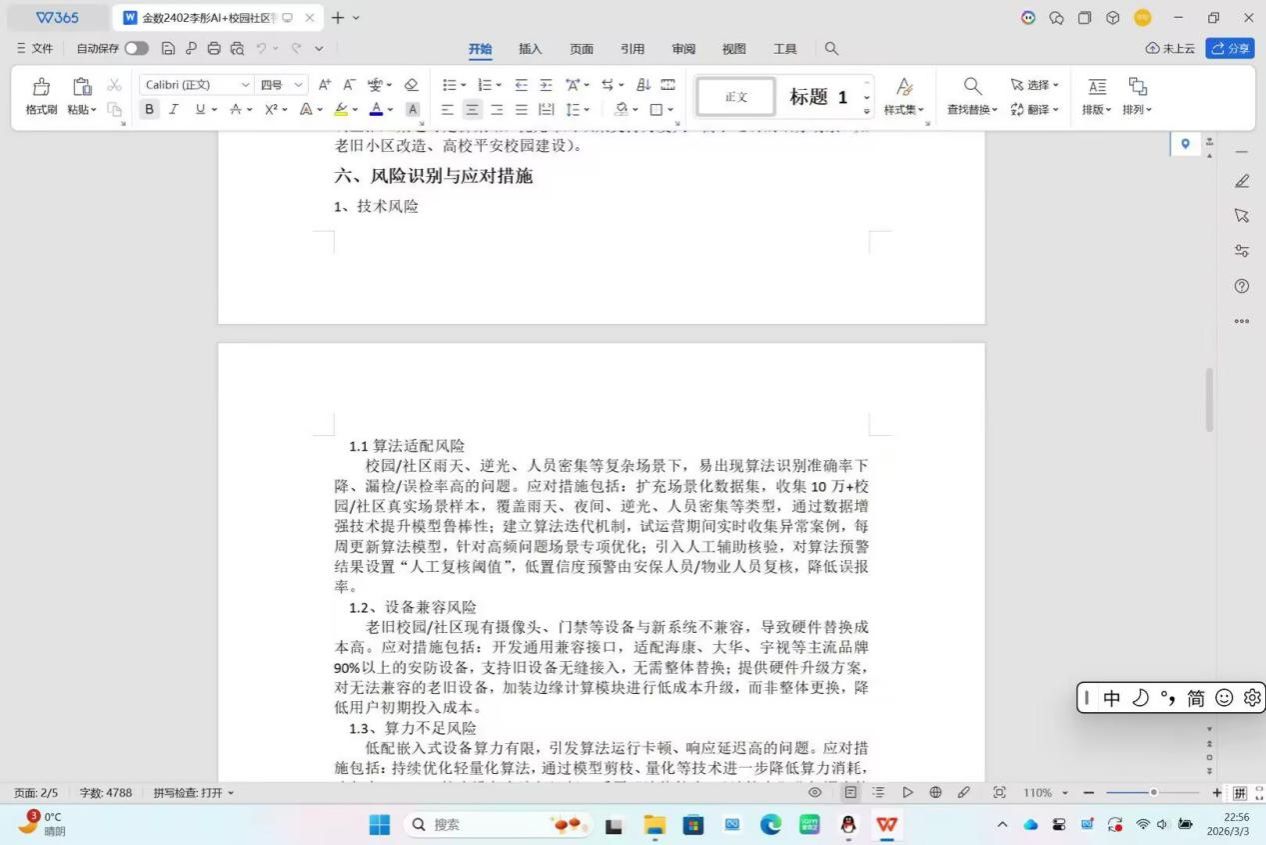 风险识别与应对环节,更让她筑牢“安全底线”思维。数据隐私、政策合规、市场推广等风险让她明白技术发展必须坚守法律与伦理的红线,既要保障技术落地,也要保护用户隐私,平衡商业价值与社会价值。这次完善让她明白,做AI安防项目,既要有技术人的严谨,也要有社会人的温度。唯有以场景为锚、以技术为基、以合规为界,才能让智能安防真正成为守护校园与社区的坚实防线,让技术在服务民生中绽放价值。