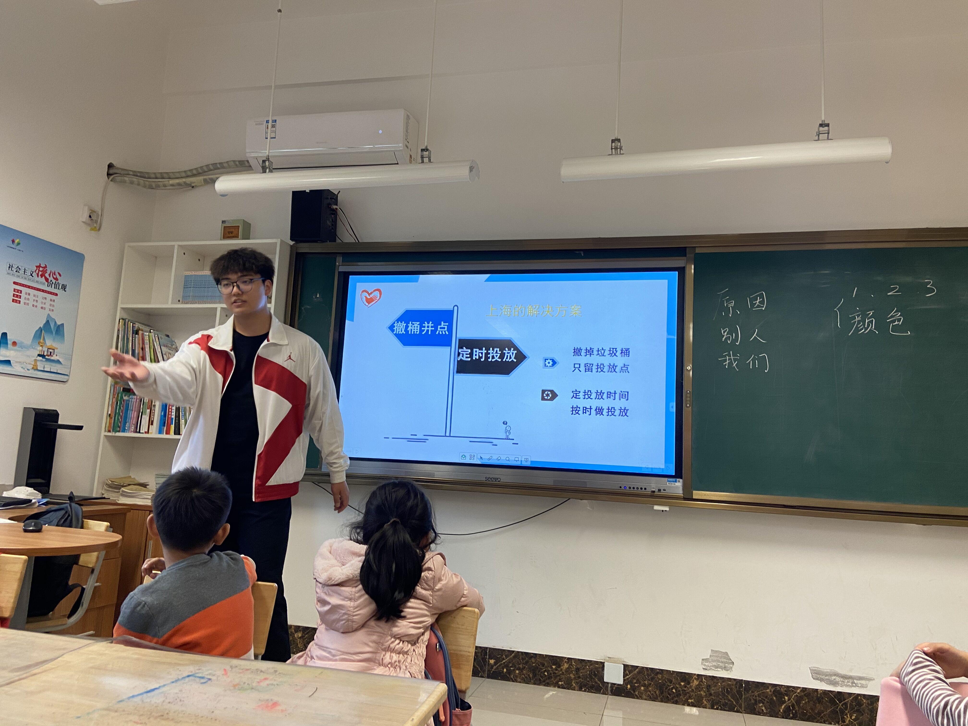 青年志愿者走进文景小学,向小学生讲解有关垃圾分类的知识。讲师陆佳骏主要从垃圾分类的原因、别人如何做垃圾分类以及我们如何做垃圾分类三个方面进行垃圾分类相关知识的讲解。在讲解的过程中,志愿者们进行了一系列垃圾分类的小游戏,让同学们亲身体验如何进行垃圾分类,通过游戏的方式教给了同学们更多有关垃圾分类的知识。活动最后以垃圾投放小游戏结束,让同学们自己分类收拾好桌面的垃圾卡片,进一步增强同学们的垃圾分类意识,加深他们对垃圾分类的理解。最后赵华磊老师代表黑人av
