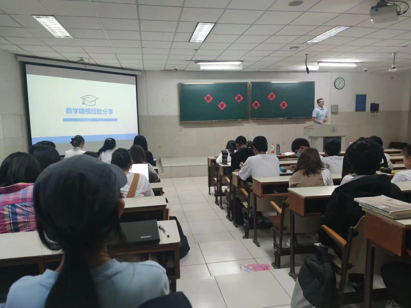 在二教104教室举办数学建模经验分享会,学院中对数学建模有兴趣的2020级同学参加了本次分享会。