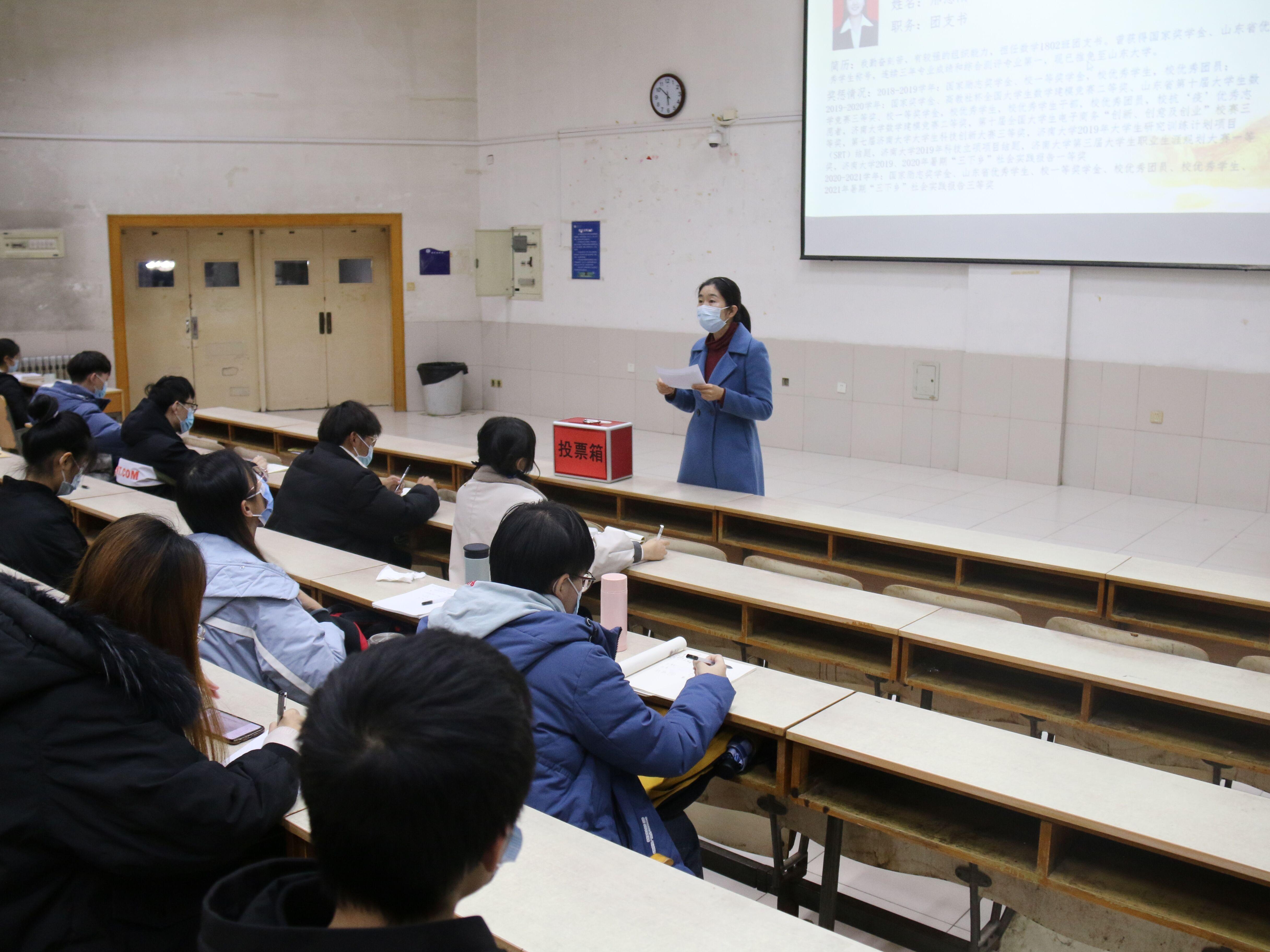 在2教201教室召开学生代表大会,学院团委书记赵华磊老师应邀出席本次会议并对大会工作进行指导。