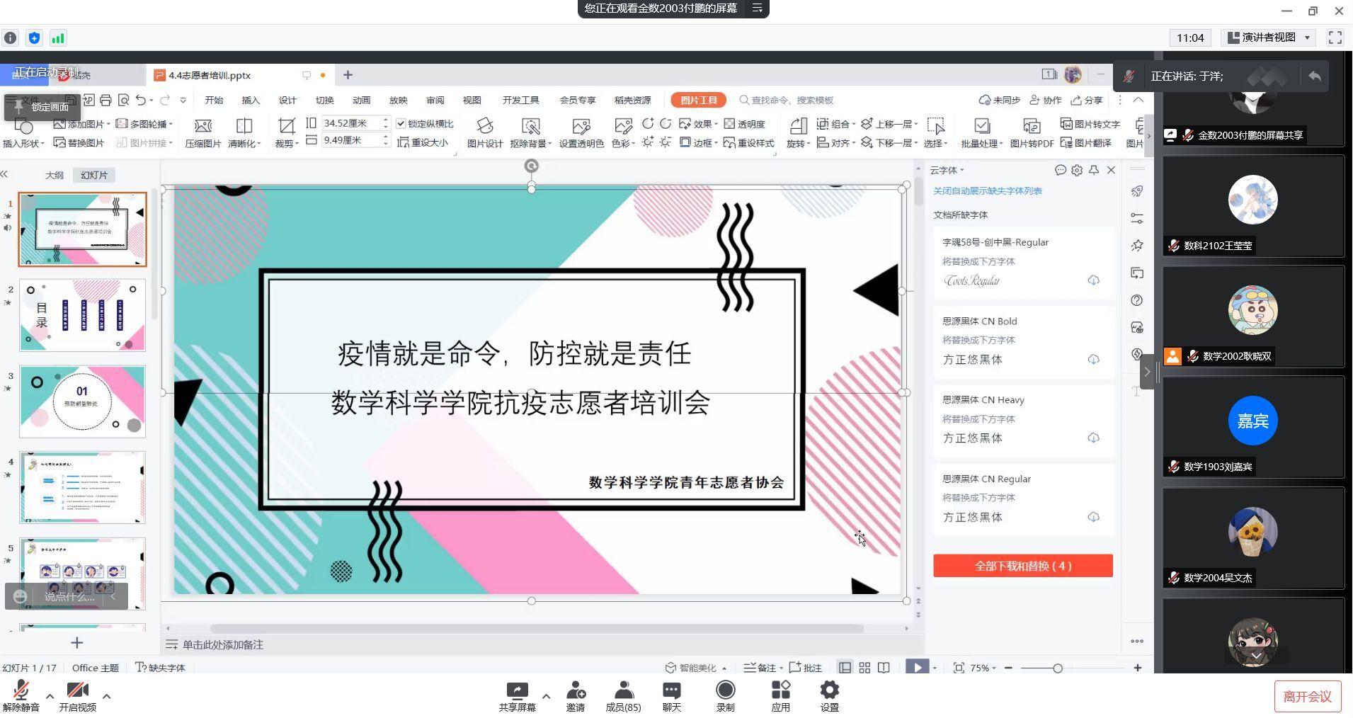 积极响应学校号召,于4月3日开展第四期抗疫志愿者培训会。