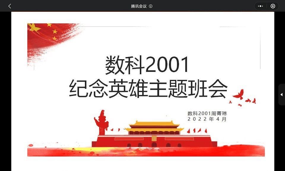 全体同学以班级为单位召开了“纪念英雄主题团学”活动。为配合目前防疫形式,此次活动在线上举办。