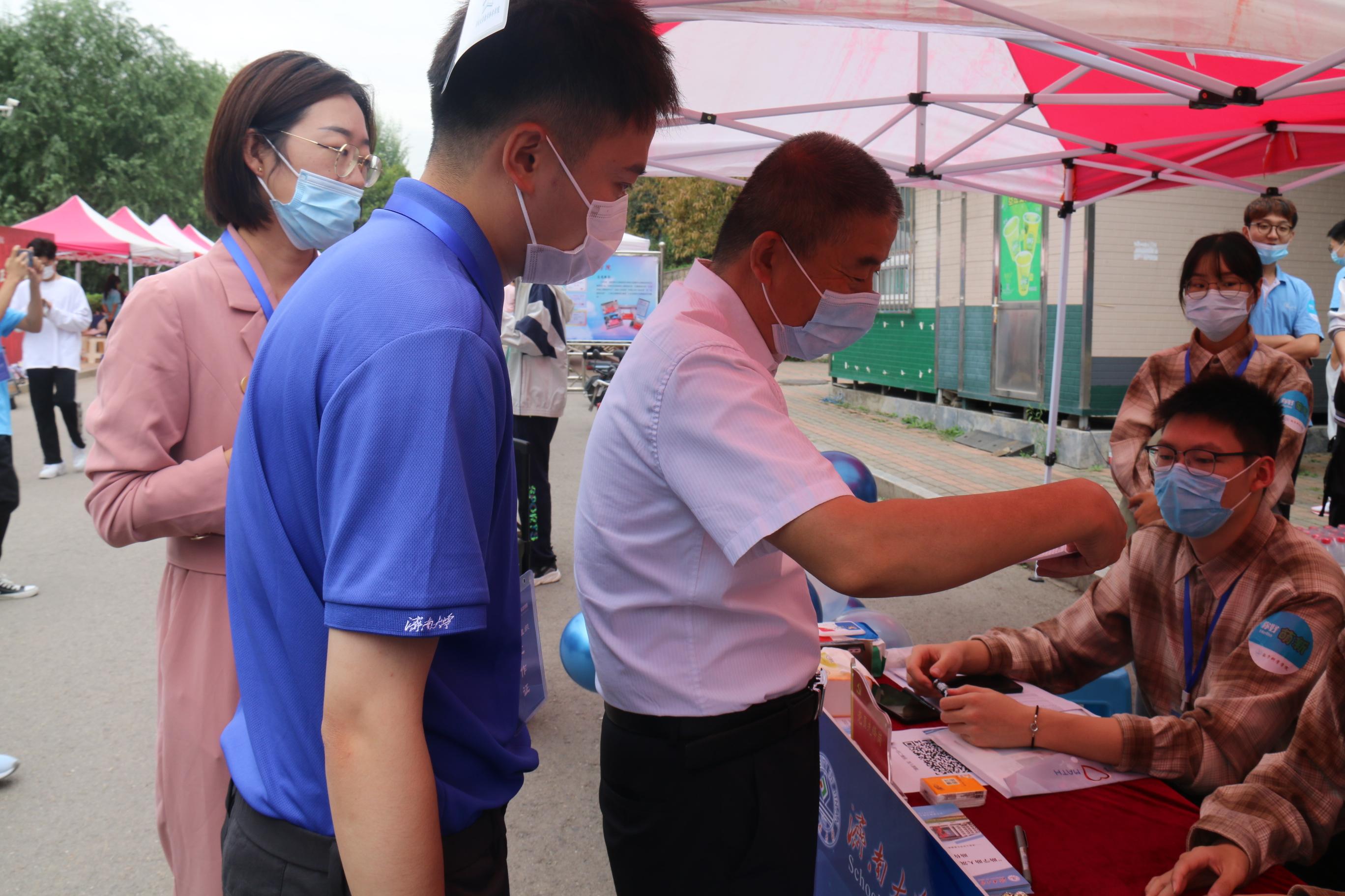有情有序更有防控,抗击疫情我们从未松懈。入校前,新生已经登录智慧济大填报14天的体温,填写到校时间、到校方式,入校时,符合报到条件的新生需要出示“绿码”以及48小时核酸检测电子报告,入校即刻核酸检测。严肃对待疫情防控,温情设计防控环节,特殊时期,核酸检测就是开学第一课。