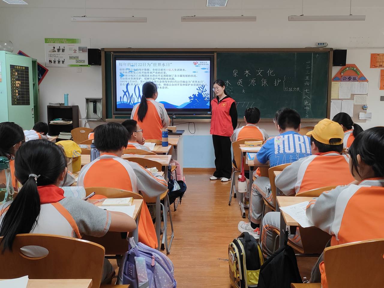 活动中讲师们主要给小朋友们讲授了泉水文化和水资源保护两方面的知识。讲师从泉水起源讲起,向小朋友们介绍济南地势,并通过与同学们互动的小游戏巧妙解释了石灰岩与岩浆岩的区别。接着由济南名胜趵突泉入手,介绍济南“泉城”称号由来。小朋友们从视频与照片中了解到水资源现状及泉水危机,积极回应讲师,提出自己的节水技巧。第二部分则是垃圾分类,用脏乱和优美的校园环境照片对比说明垃圾分类的重要性,以上海、北京和济南三地为例介绍处理垃圾的方案。志愿者们帮助小朋友们进行有趣的拼图游戏从而学习基础的垃圾分类知识,再由讲师借助生动有趣的图片与文字帮助他们进行识别与总结,每一位小朋友都积极回答问题,分享自己的看法。在这样活跃的氛围中,小朋友们学习到了许多的泉水文化知识和垃圾分类知识,也进一步提升了节水意识与环保意识。
