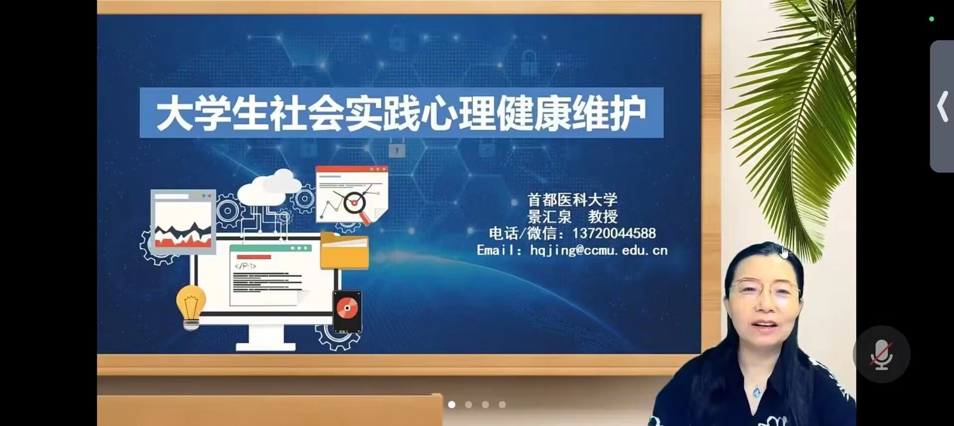 该讲座邀请了首都医科大学景汇泉教授为各实践队的同学们进行讲解,本次讲座的主题是《大学生社会实践心理健康维护》。景教授向同学们介绍了社会实践的必要性,她认为社会实践是大学生活中重要的一部分,通过参与社会实践,同学们能够拓宽自己的眼界,掌握实际技能和经验。她向同学们介绍了社会实践的5种类型,并结合自身经历着重介绍了社会调查与社会考察,让同学们认识到,社会实践不仅是一种体现社会责任和担当的行为,更是一个锤炼自身能力、增强个人素质的机会,能帮助自身在成长发展中不断积累经验、锻炼自我。在实践过程中,确保自身安全是非常重要的。景教授提议同学们应该了解并掌握基本的急救常识、提高自救能力,同时为同学们假期的健康生活加上一道牢固的意识安全防线。景教授告诉同学们在实践过程中要注意心理健康的重要性。在进行社会实践时,可能会面临各种各样的压力和挑战,如当地人员不配合以及交通不便等,这可能会对同学们的心理健康造成负面影响。因此,景教授提出了一些有价值的建议,帮助同学们在实践过程中保持良好的心理状态。
