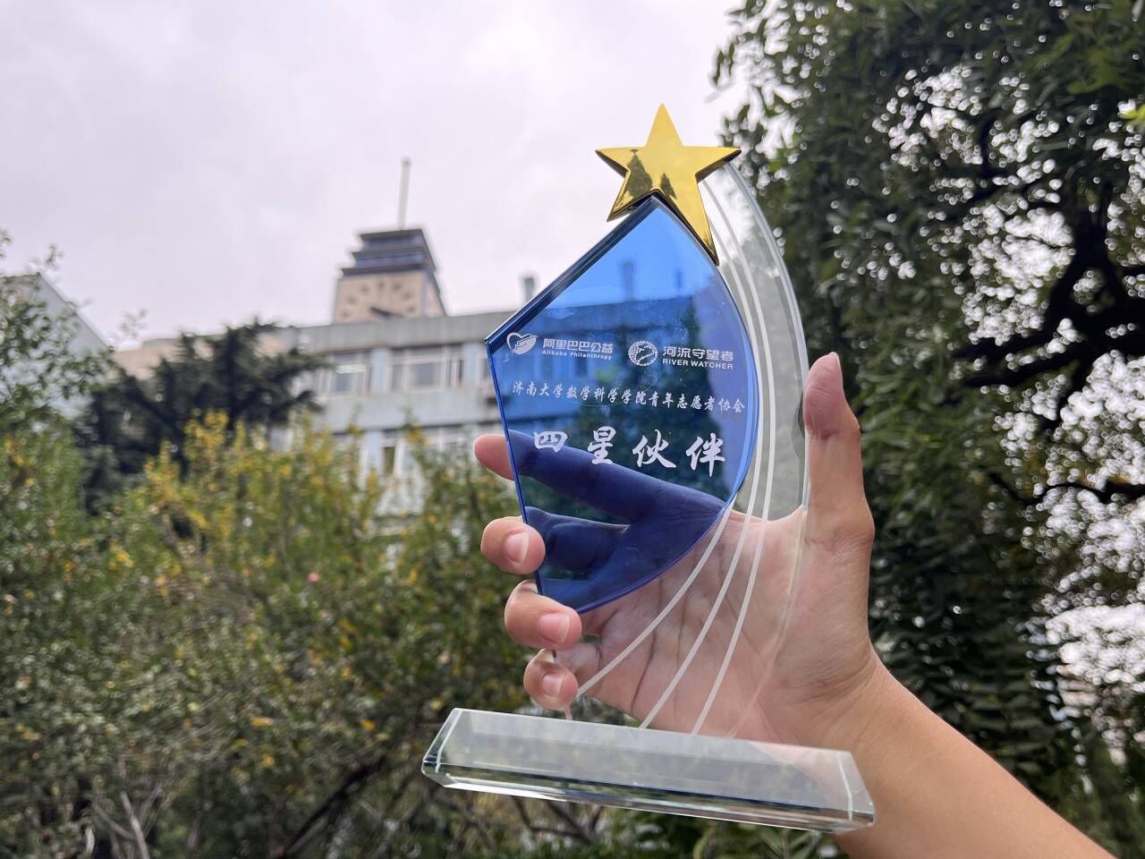 青年志愿者们于暑假期间在百里黄河风景区开展保护母亲河行动,荣获阿里巴巴公益、阿里巴巴公益宝贝爱心网商、爱德基金会和南都公益基金会授予的“四星伙伴”奖杯,为保护母亲河贡献了自己的青春力量。