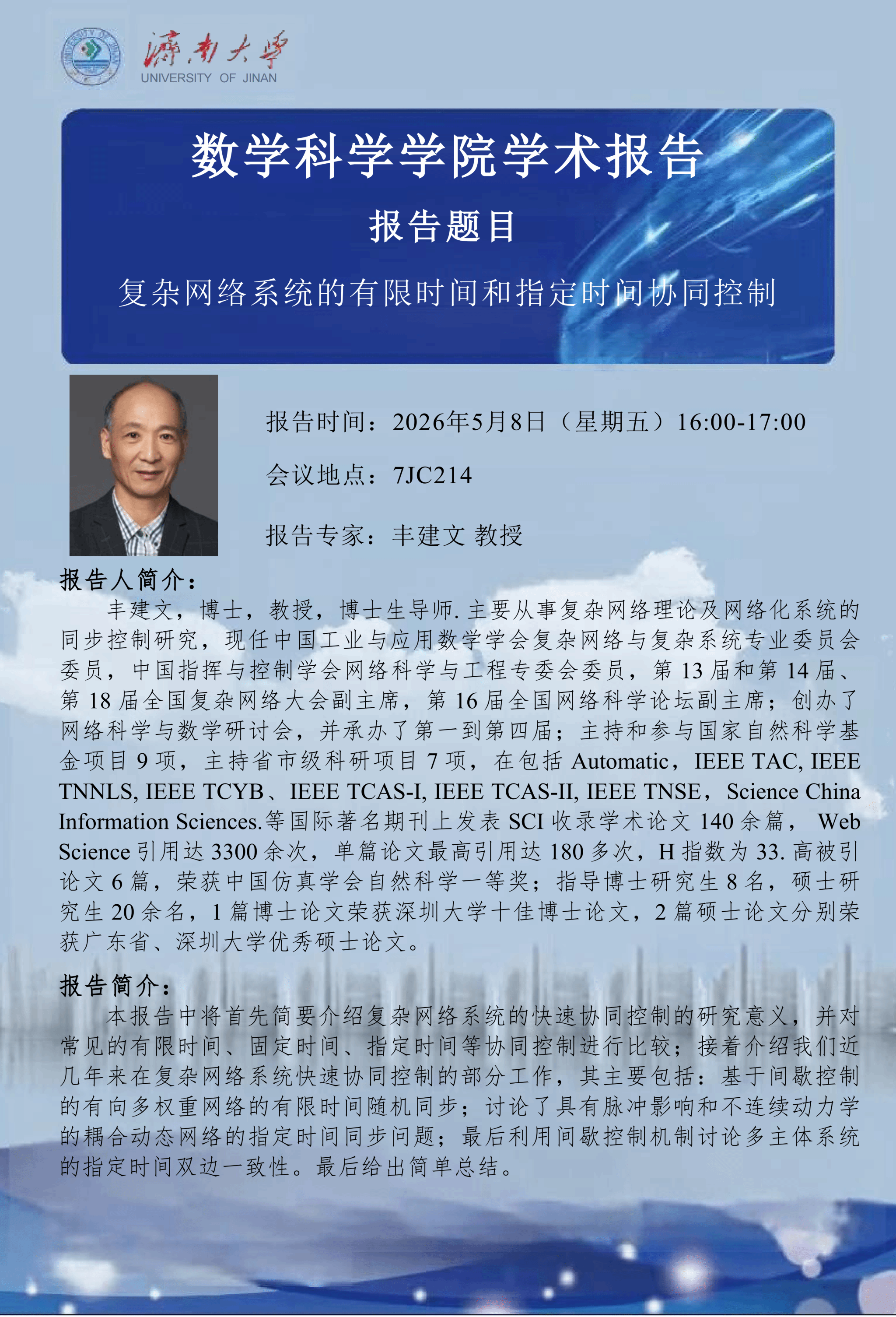 上一条:龙山数学论坛系列报告13: 复杂网络系统的有限时间和指定时间协同控制