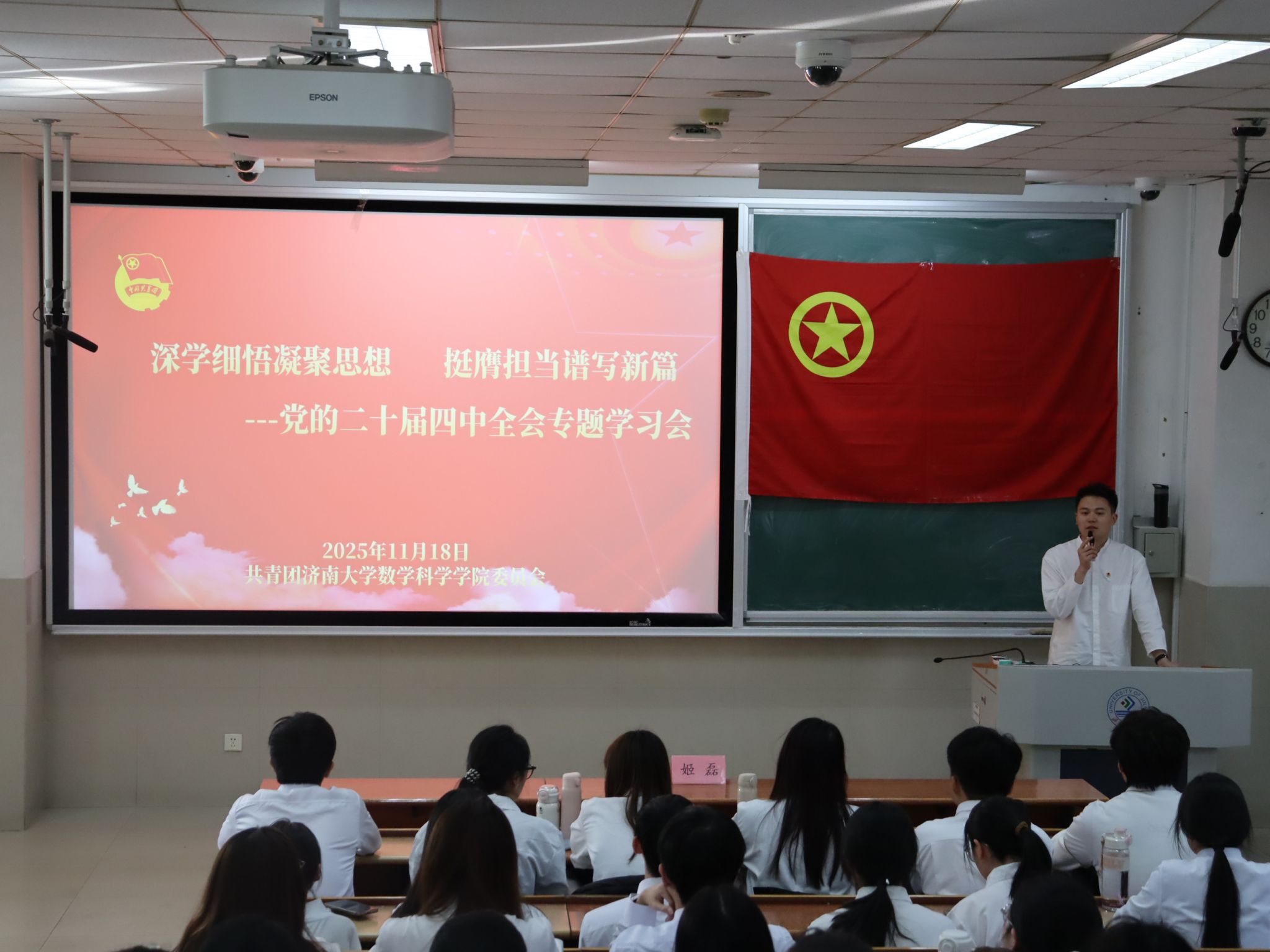 团委将持续学习贯彻党的二十届四中全会精神,不断完善分层分类引领机制,创新“理论+红色+实践+专业”的育人模式,以更接地气的活动载体、更有锐气的改革创新、更聚人气的服务举措,引导全院团员青年深刻领悟“两个确立”的决定性意义,增强“四个意识”、坚定“四个自信”、做到“两个维护”,在推进中国式现代化建设的伟大征程中,以数学人的严谨与执着、青年者的闯劲与担当,书写不负时代、不负韶华的青春答卷!