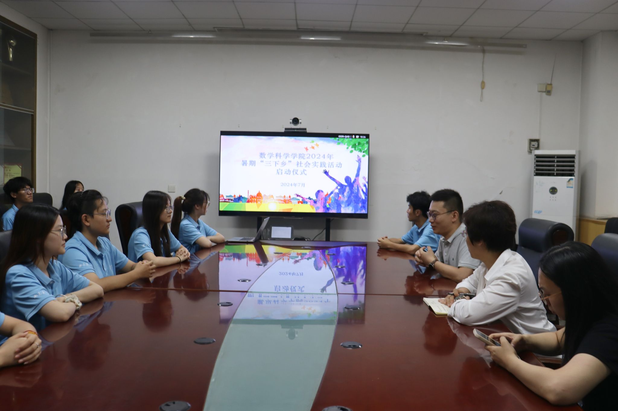 2024年暑期“三下乡”社会实践活动启动仪式在学院二楼会议室召开,学院党委副书记、副院长张沂红,学办主任、团委书记房琳琳,辅导员李宁以及学院暑期社会实践各队伍负责人、成员代表参加本次启动仪式。