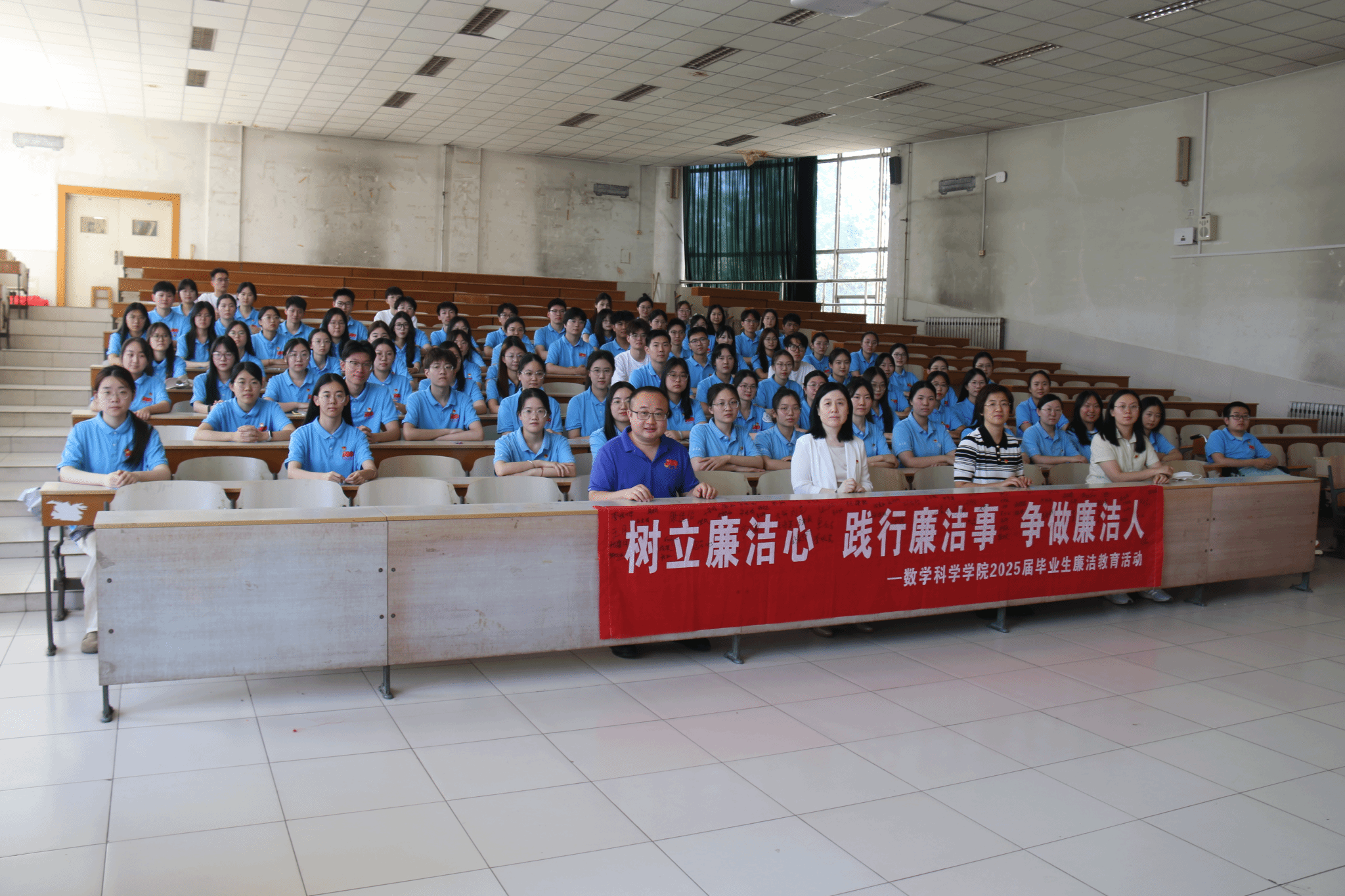 在毕业生代表、2025年“学生党员标兵”宋中华带领下,全体毕业生党员面向党旗庄严宣誓,铭记入党宣誓时的郑重承诺和坚定决心,重温入党初心。全体毕业生党员依次在印有“树立廉洁心 践行廉洁事 争做廉洁人”的条幅上郑重签上自己名字。