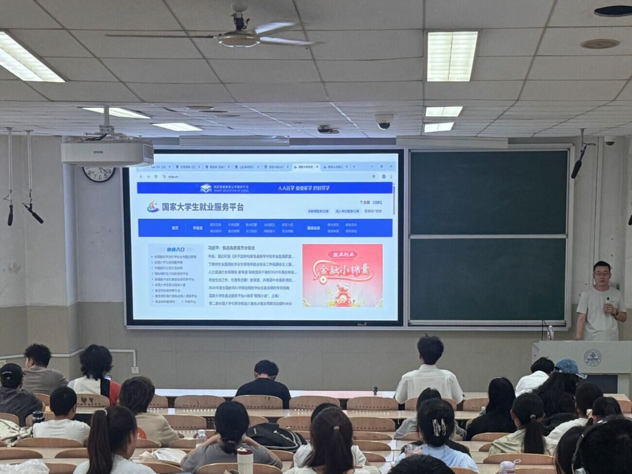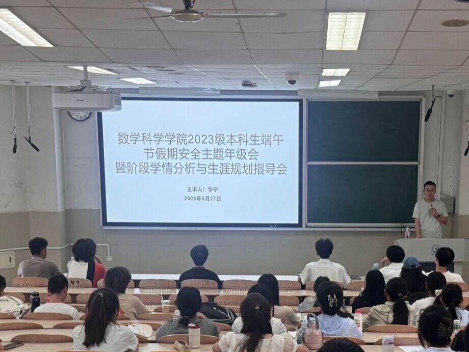 于5月27日在第十一教学楼5102室召开2023级阶段学情分析和生涯规划指导主题年级会,由2023级辅导员李宁主讲。