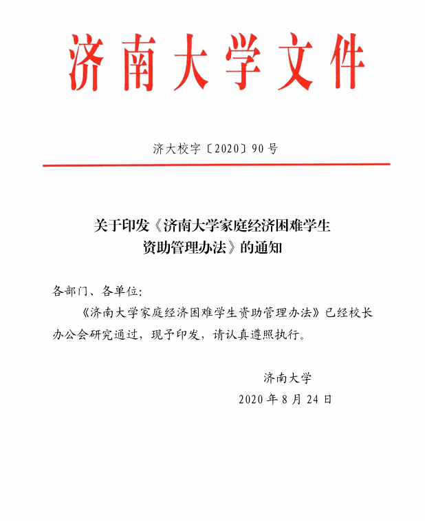 济大校字〔2020〕90号-关于印发《黑人av 家庭经济困难学生资助管理办法》的通知
